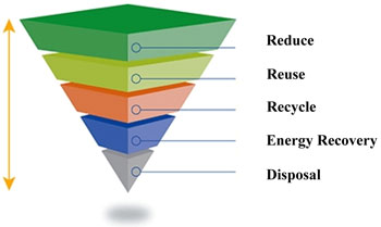 The main task of the “waste hierarchy” is to make people get maximum practical benefit and cause minimum damage to the environment as a result of waste management. At present, the European model of waste hierarchy consists of 5 main components: 1. Reduce; 2. Reuse; 3. Recycle; 4. Energy Recovery; and 5. Waste Disposal.